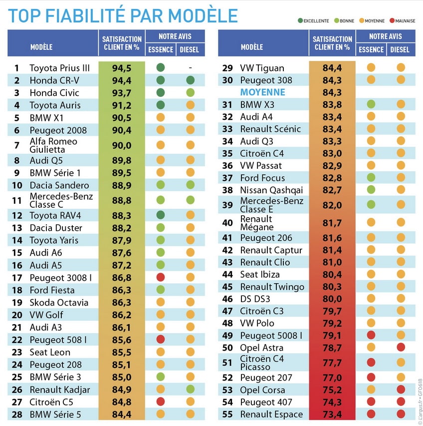 Fiabilité : état des lieux par marque et modèle